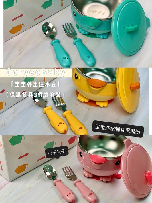 GoryeoBaby Stainless Steel Anti-drop Bowl Three-Piece Tableware Set